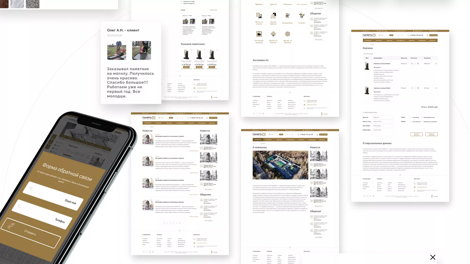Разработка логотипа, фирменного стиля и сайта в Малгобеке для компании «Память-М». Компания является предприятием по изготовлению всех видов надгробных сооружений: памятников, цоколей на могилу, оградок, столов, лавочек, ваз, балясин, плитки, мемориальных комплексов. Компании «Память-М» изготавливает все виды мемориальных изделий на собственном производстве в Малгобеке.